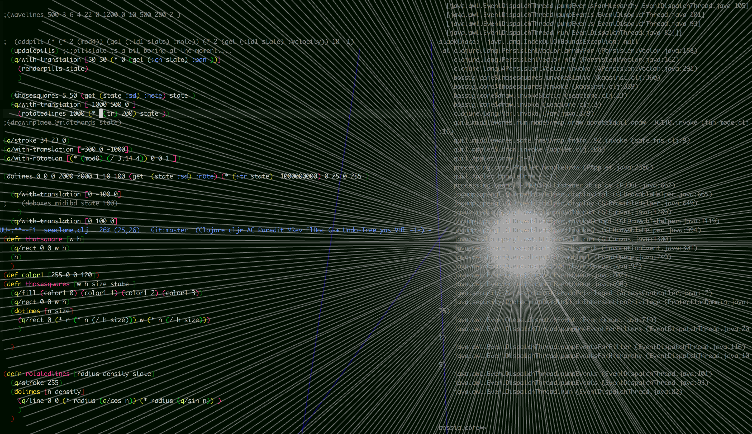 Together with Sondervan (music) Kasper forms the live coding project H.AL.I.C. where he performs the visuals.
